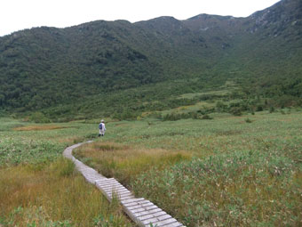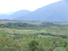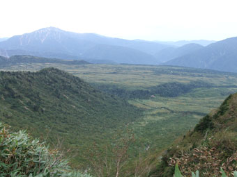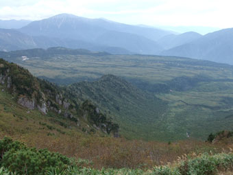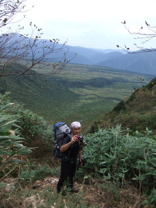 | 本当の水場(第3の水場)で一服。 | 大日平を航空写真のように眺める。 |