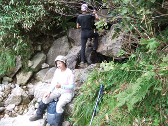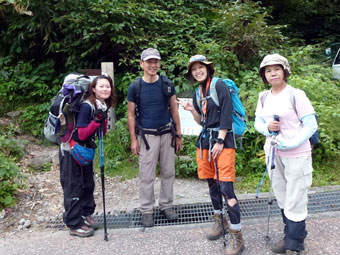 | 大日平と薬師岳 | ワイワイ話ながら、沙和さん・けいさんと登山口までご一緒する |