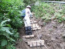 | 大日平山荘まで、頑張ったつもりであったけれど、タイムは 差程でもなかったと知らされ、ちょっとがっかりする「山ノ神」 |