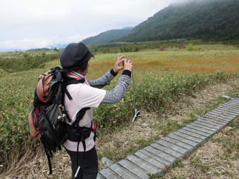 | 尚も、長い木道が続く。 |