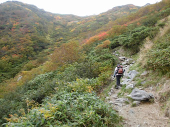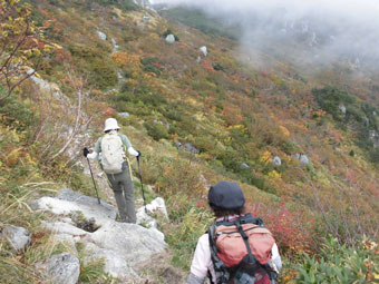 写真を撮っておけば良かったのに・・・と後で後悔する。 雷鳥沢でキャンプをするという福井の荻野氏は大きな荷を担い で登っておられた。何度も追い着かれてお話をしたのでした。 |