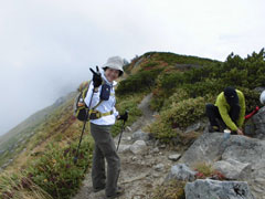 今の「山ノ神」では、6時間は掛かると思っていたが、意外にも順調で、5時間で行けるのでは思う程であった。しかし、最後には、ペースダウンし、コルで止めると言い出した。でも、途中から一緒した人達と共に山頂を踏んだ。