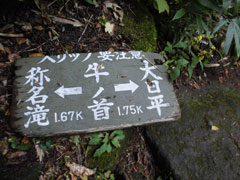 「水場近し」の標識。でも、なかなか・・・ |