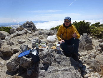 ふーっと吹く風は、流石に2,500mである。身が縮んでしまう。それでも、ずっと居たい心境であった。そして、名残惜しかったが午後2時半に山頂を後にした。一気にあの急な斜面を下ったのであるが、大日平のど真ん中辺りまで、40~50分ほど降りてしまう事が出来、コーヒータイムを設ける事が出来た。格別の味であった。