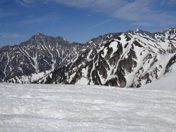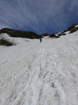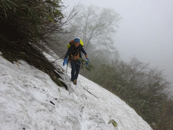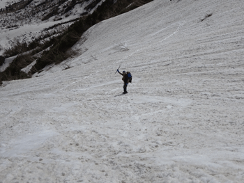 山頂への残雪。そして、雪庇。