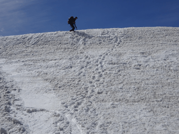 急峻な雪面を登ります。