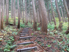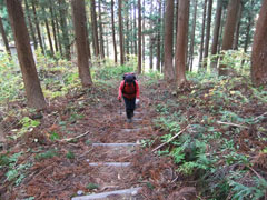 登り始めは杉林です。 |
