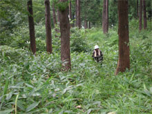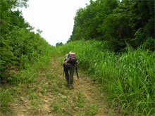 笹藪の中を行く。 |