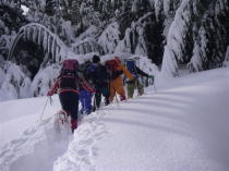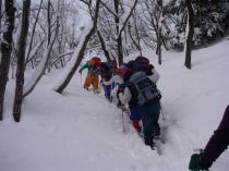 標高こそ500mに満たないが雪深い所で、ラッセルを交代しながら進む事になる。