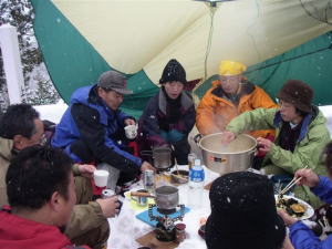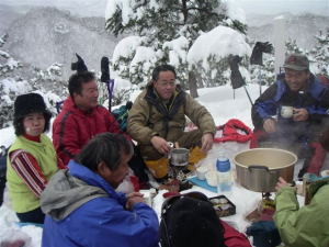 天候・雪量などから、「赤谷の頭」は、かなりの苦戦が予想されていただけに、いつもの宴会を簡単に、いやそのもの自体がないのではないかと、各人相当飲食物の軽量化に努めて来られたようであった。