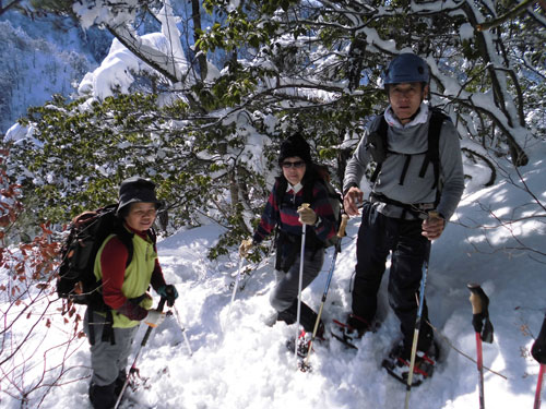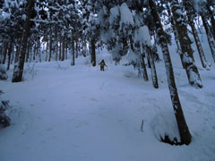 | ?ピークから水上集落を見下ろす。 | 一気に駐車地点を目指す。 | 杉林を通過。 |