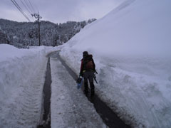 | 積雪が尋常ではない。 | 除雪ブルと遭遇。 | 西種(水上)の標識。 |