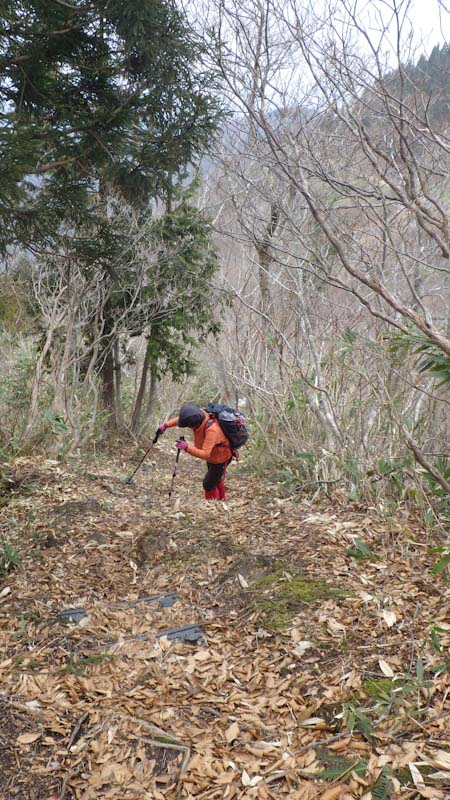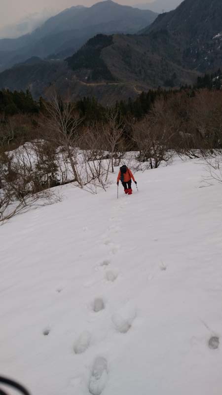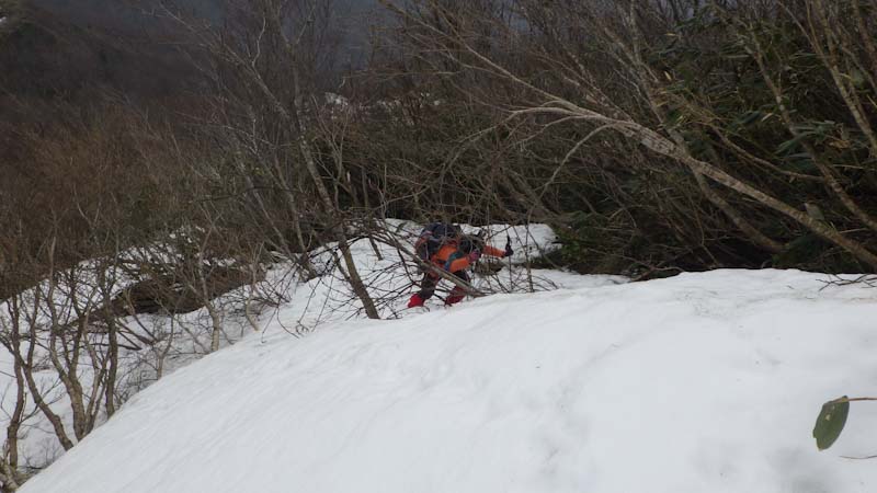 急斜面をトラバース気味に・・ |