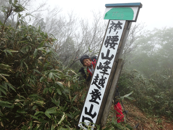 | 頂上の標識がある所で。何の変哲もないところですが・・・ |