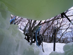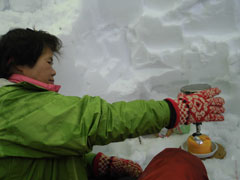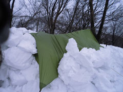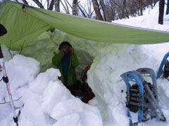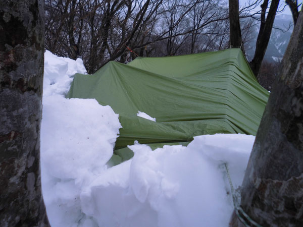 背丈ほどのものであっても、二人が凌げばいいのだから、それ程時間を要しない。でも、風が強いから、タープを張るのに手間取った。それでも、雪壁を同じような高さに揃えてから、タープを張り、その上から、雪で押さえるスタイルをとった。温かかった。カップ麺も、コーヒーも美味しかった。そうなると、山頂はどうでも良かった。