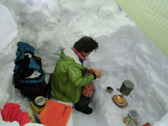 山頂を諦め、雨風を凌ぎ、食事をするため穴を掘った。