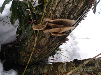 1番目の鉄塔でも、林道に出てでも、「山ノ神」の囁く、「もう止めよう。」 には耳を貸さなかった。「もう1時間経たなければ・・」 「お昼まで・・」 とか、「いたたまれなくなるまで」 とかを言い続けてしまった。それでも、不思議なもので、あれだけ重い足の「山ノ神」であっても、ナメコ・ヒラダケを見付けるや否や、急に足が速くなるのには、どうなっているのかと思ってしまった。