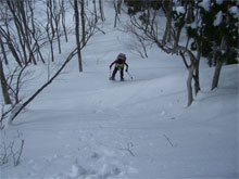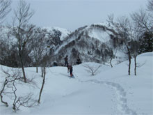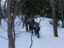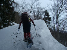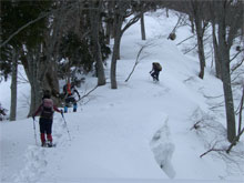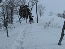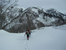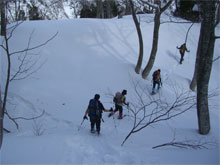 | クラストした急登に、山ノ神四苦八苦。 |