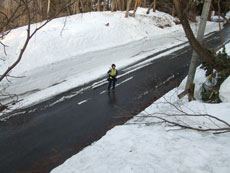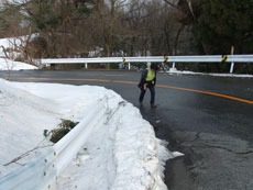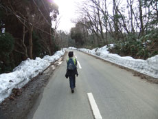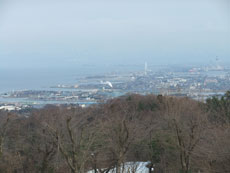 自宅で食事を済ませてから出掛けたから、コンロ・がす・コッフェル・水・コーヒーに手袋、念のために雨具などの簡単な装備。小一時間歩いた伏木の十間道路に差し掛かった頃、お互い喉が渇いてしまった。「今日は我慢!お金を使わない。」 などと誓っていたのであるが、139円の「のどごし4本」を買ってしまったのである。(他に、つまみ少々)