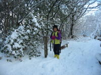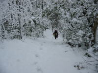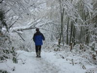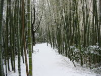 雪の中の竹林を行く |