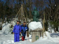 大伴家持像の前でsekkyan君と