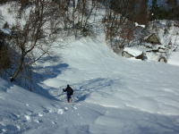 12月中旬から降りだした雪は大雪となった。しかし、予想に反して、元日の今日は素晴らしいお天気となる。私達が登り始めた頃は、立山連峰が霞んで見えたが、それでも、よ~うく見ると、剱岳は確認出来た。