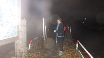 登山口のまなび交流館をスタートする時でも暗い。ヘッデンを持っていかなくてはと思いながら、相変わらずのボケで忘れて来た。でも、登山道が見えないわけでもない。その内だんだんと薄明るくなって来るし、雲間に朝日が昇って来るのだから、身も心も清々しくなって来る。