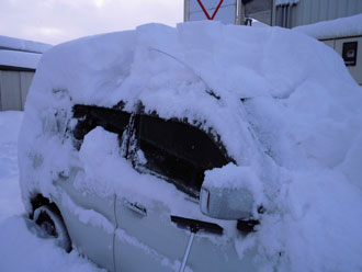 大雪に見舞われた自宅駐車場にて・・