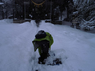 そうなれば、「近くの二上山に行くしかない。」 となるのです。まなび交流館に着いたら、大型ブルで除雪の真っ最中で、駐車するには、ちょっと時間が掛かるようでしたので、二上射水神社に参拝・待機のつもりでしたが、小学校時代の遠足で、この神社から取り付いた事を思い出しそれに従った次第でした。