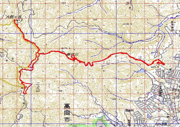 伏木八十八箇所付近をスタートし、鐘撞き堂・仏舎利塔・ 大師ヶ岳頂上・二上山頂上を周り、スタート地点に戻りました。 |