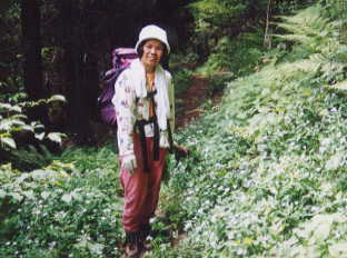 少し西斜面をトラバースし、沢を渡って、北方向へ向きをかえ急登。杉が殆どなくなり、ブナをはじめとする、広葉樹が目立ちホッとする。南側に御前山が見えて来る。