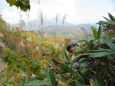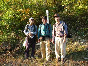 もう一つのピーク「六谷山」に行く為に、茂住峠に戻ったのは、午後1時半を過ぎていた。「ターさん」の車の他にもう一台の車が止まっており、着いた途端に車から降りて来た人が、「元ちゃんですか?」と尋ねて来られた。一瞬戸惑ったが、未だお会いした事がなかったが、「北川さんですか?」と問い直した。彼は、私の今日の完踏記念に、先に六谷山を登りまた、長棟川沿にも車を走らせたが、我々に会えなかったと言っていた。我々がこれから登る六谷山にもう一度登らないかと誘ってみたが、イヤイヤともうたくさんと言って別れた。