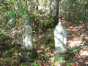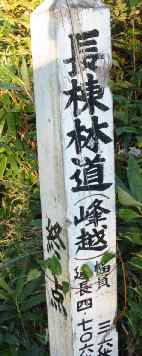 峠から1.2㌔下って行くと、長棟川沿の道と合流し、右折(南へ)して0.9㌔進むと右側に地蔵がある。三叉路とは言えないが、小川に橋が掛っており、その先にはキャンプの跡があった。その川(長棟川)は、浅く川幅も狭くなり、岩魚が泳いでいるのが分かった。なおも100㍍進むと右手に鳥居があった。もうこの辺にくると、道の草も腰の辺まで伸びており、道端の草木も車に触ってバタバタ、キューキューいっていて、窓を開ければ、何でも入ってくる。