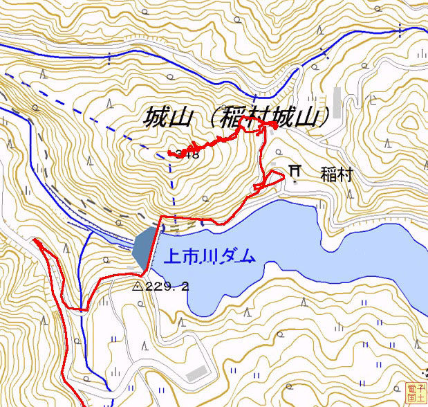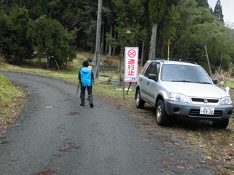あれもこれも、いろいろ話しても、時間が余った。そんな折、池田氏から「稲村城山」の事が出た。看板は見ているが、お互いその機会がなかった。「では・・」 となり、同氏の後を付く事になる。上市川第2ダムから、冬期期間直接稲村に行けないので、上市川ダムから稲村に行く事になる。こんな道があるとは全く知らなかったが、この道も本当は通行止めだったのかもしれない。