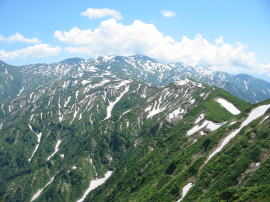 | 白鳥山から少し下った展望の良い所 | 200mの下り | 崩壊している所もあった | 剱岳が仰げて嬉しかった |
