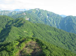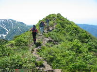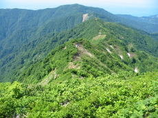 遠くに見える犬ヶ岳から戻り もうすぐ白鳥山に・・・ |