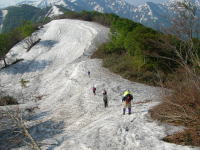 残雪を踏んで大きく下る | 雪上歩行はそれなりに気持ちがいい | 長い行程は、初雪山が癒してくれる |