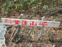 | 黄連山に到着! | 黄連山の標識 | 黄連山から犬ヶ岳を望む。あと1時間。 | カタクリの群落① |