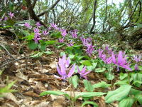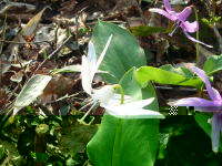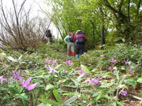 | 予想以上の残雪にビックリ | カタクリを踏まないように歩く | シラネアオイ | カタクリの群落② |