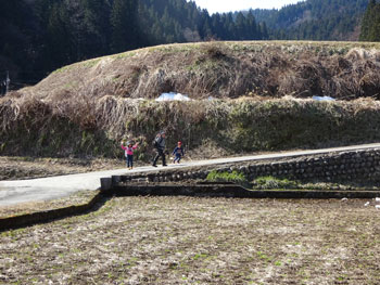 | 田んぼの中の駐車場から歩く。 |