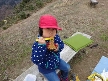 城ヶ平山で、待望の食事です。 |