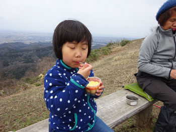 峠山に戻って来ました。 何か美味しい物を食べています。