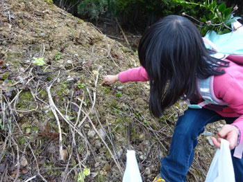 最後はフキノトウ採りです。 懸命に頑張っています。