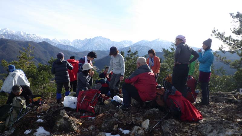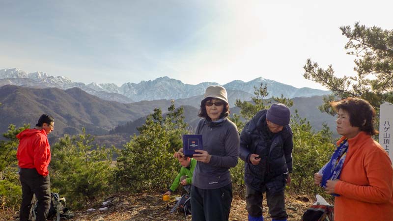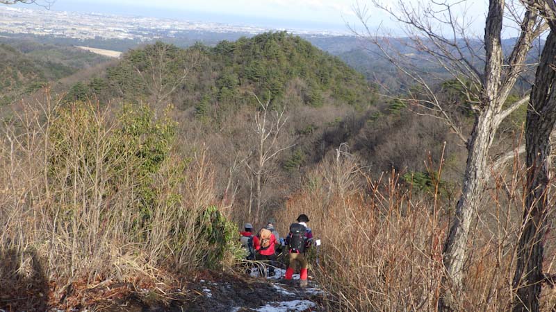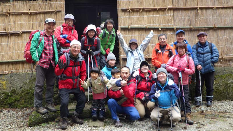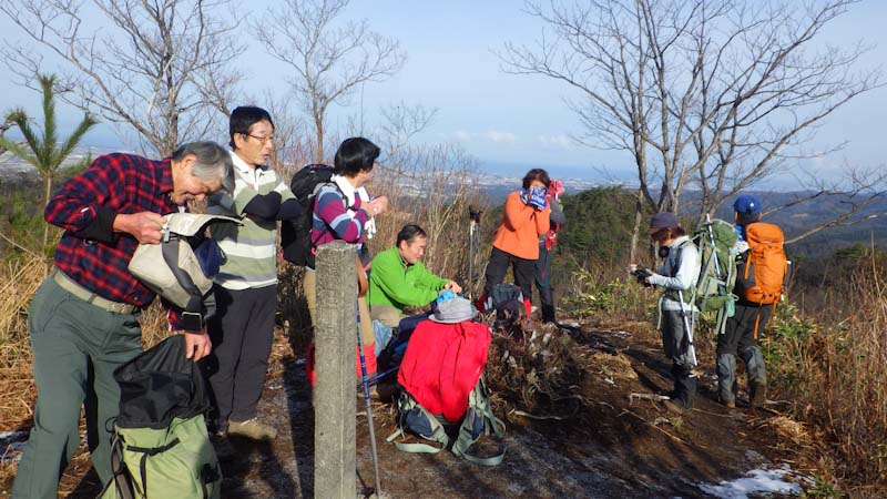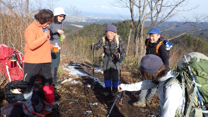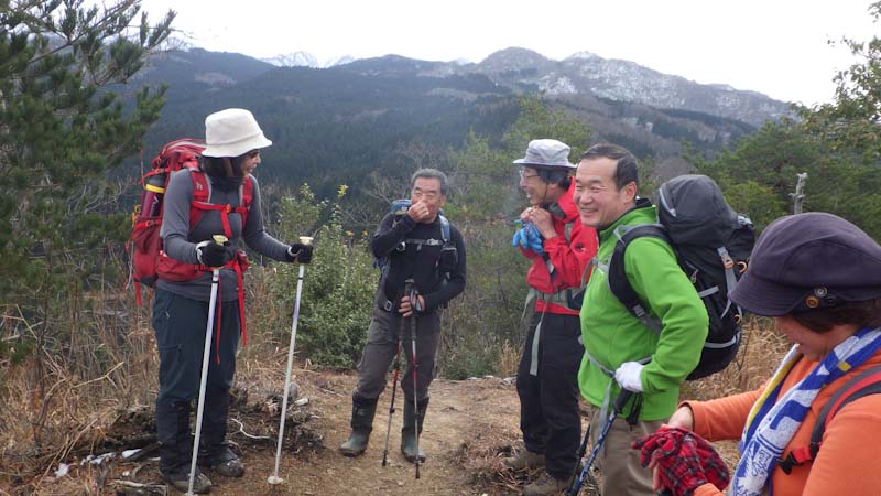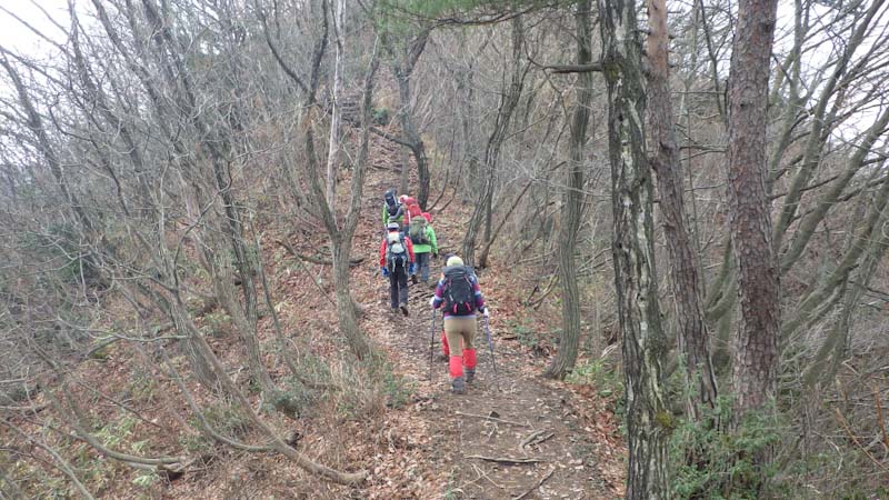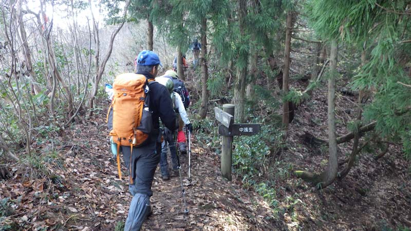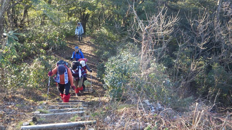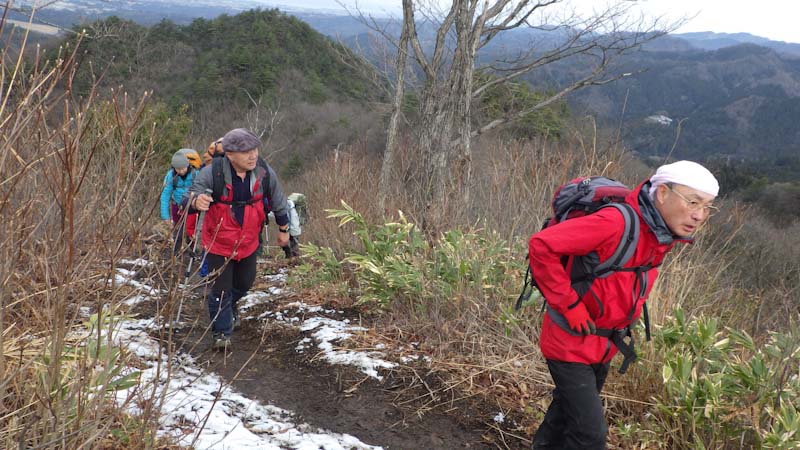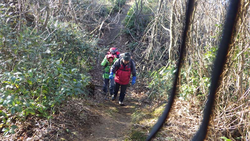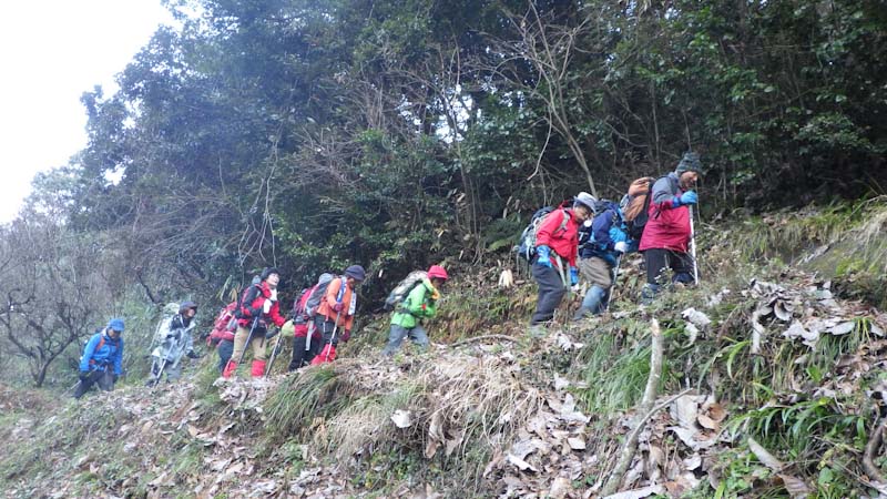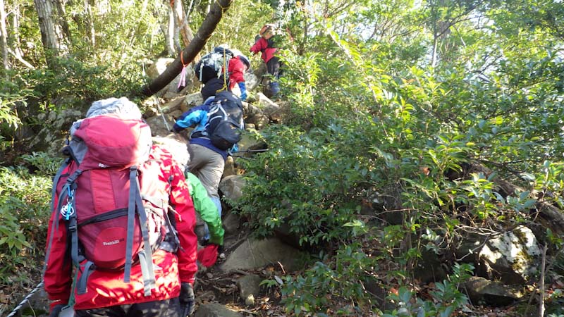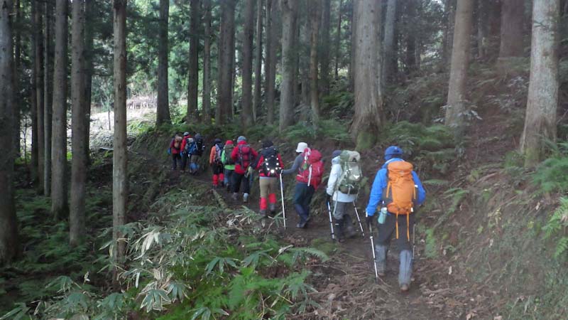 | ハゲ山への通過点峠山に向かって出発。 | リーダーのシュンちゃん、いろいろと気遣いあり。 |