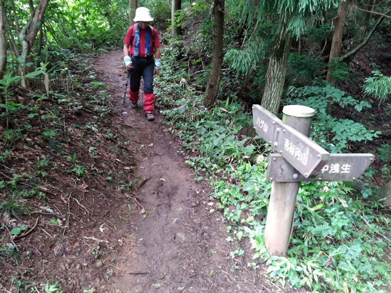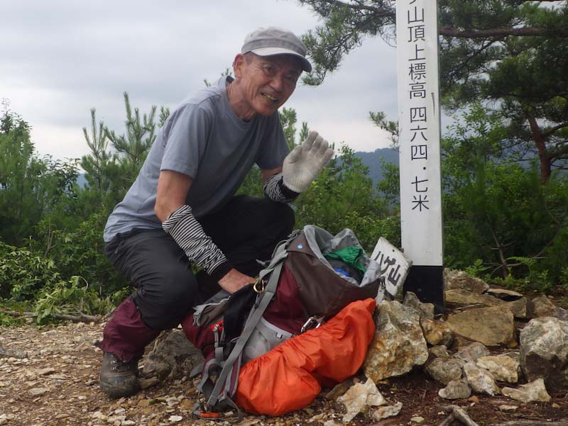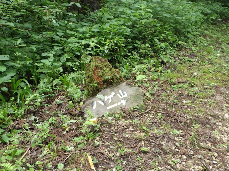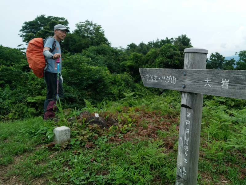 依然 「山ノ神」の足取りは鈍かった。私は、平生に戻っていた。浅生への分岐を過ぎてから、「ハゲ山へは私だけが行って来る。水上への分岐で待ち合わせにしよう。」 となった。峠山から「おーい」 と叫び声が聞こえた。私が、ハゲ山で記念写真を撮っていた時である。その後雨に遭わず水上集落に降りた。