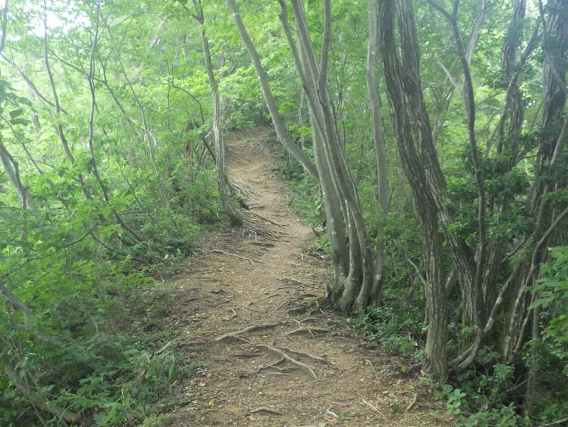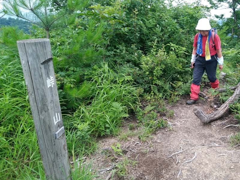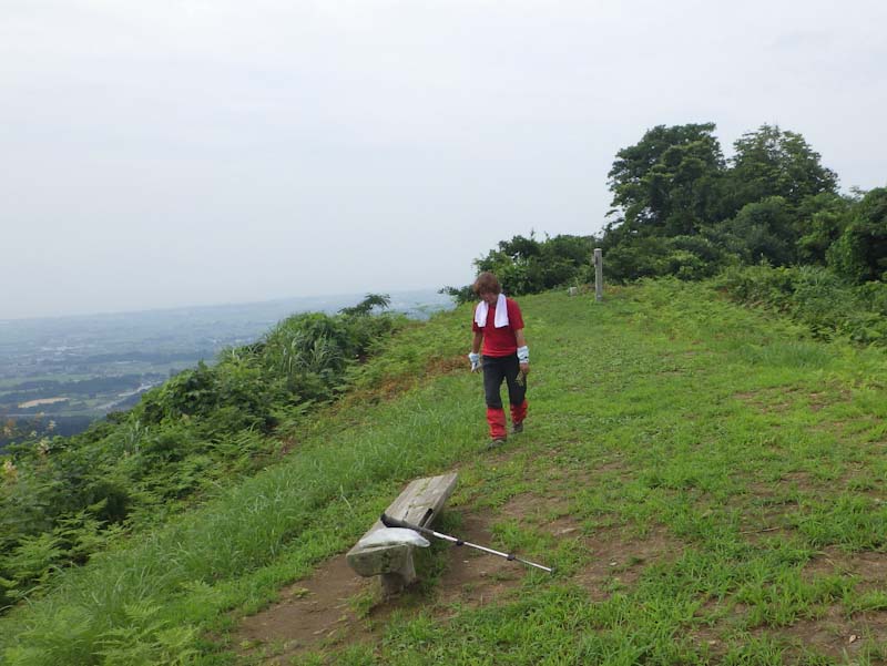 「山ノ神」の足取りは重かった。終いには「熱中症ってのはどんな症状?」 と言い出した。それもそのはず、風もなく、異常に蒸し暑く、汗がタラタラであった。気温も30℃超えであったはず。何もかもが びっしょりであった。” ちょっと行っては止まる。 ” の連続であった。倒れてもらっても困るのであるが、それでもコースタイムくらいでは歩いていたので、振り返りながら城ヶ平山に辿り着いた。