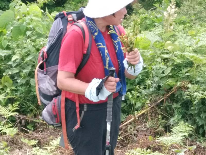 城ヶ平山に着いたら、「山ノ神」は、いっぺんに変わった。ワラビを採りだした。ビールを飲み始めた。ここまでやれば大丈夫である。山並みは大倉山くらいしか望めなかったが、市街地の方は、富山湾を含めて視界は良かった。でも、黒い雲のあるところから、雷鳴が轟き始めた。降らない内に降りなければ・・・