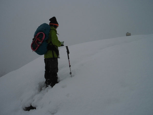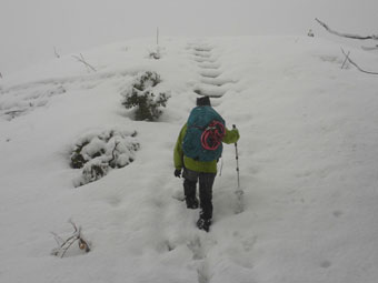 登り始めは、カンジキやスノーシューはいらなかった。
