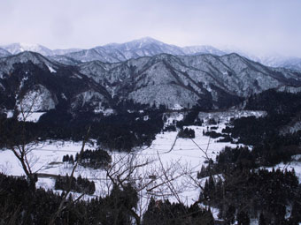 | ハゲ山の一つ手前のピーク(峠山)で・・ | 水上集落を見下ろす。 |