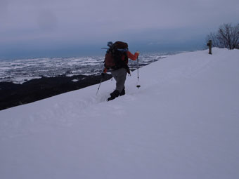 | もう少しでハゲ山頂上へ・・・ | ハゲ山頂上で・・。しかし、食べる物がない。 |